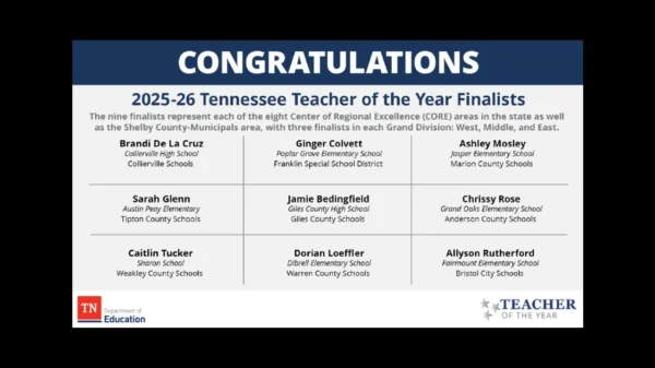 The Tennessee Department of Education has announced nine educators as finalists for the 2025-26 Tennessee Teacher of the Year award. The finalists were selected...