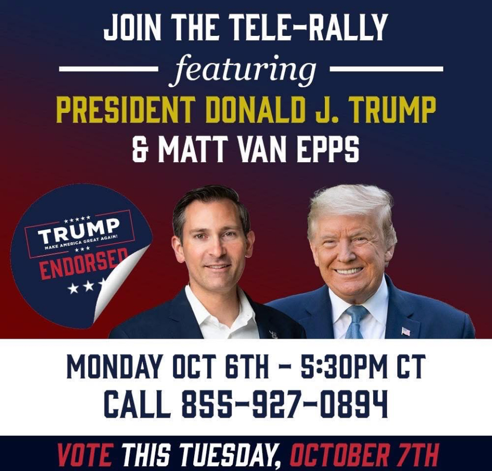 As the GOP Primary in the special election for Congress in the 7th congressional district races to a conclusion tomorrow, Matt Van Epps announces a tele-town hall with President Donald Trump at 5:30 Monday.