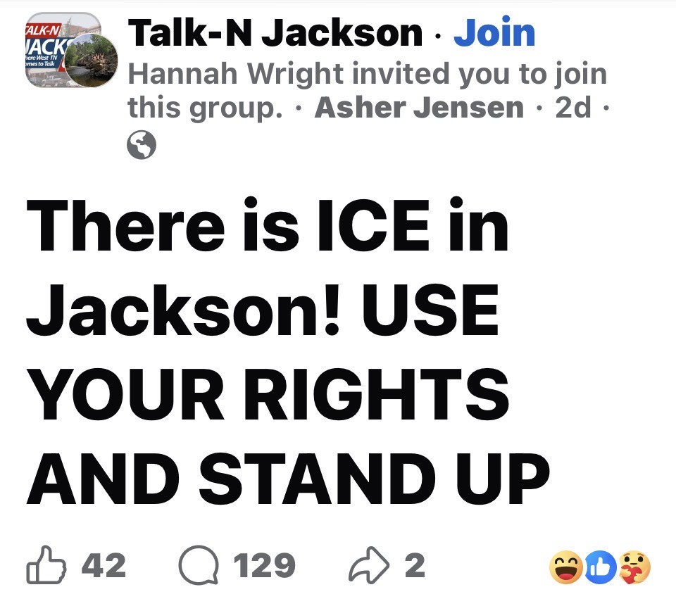 A Jackson radio station has posted real-time video detailing the location of an ICE operation, which put ICE agents and law enforcement officials at serious risk of the kinds of violence that have recently occurred in Minneapolis. Talk-n West TN 101.5 WNWS FM posted video on their social media of an active ICE operation in Jackson and provided the exact address as well.