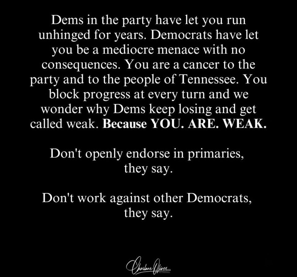 Should be a testy week ahead among Democrats in the Legislature this week. Maybe Speaker Sexton can replace Justin Jones as Behn’s seatmate in the House with Mitchell for the rest of the session. Just sayin’.