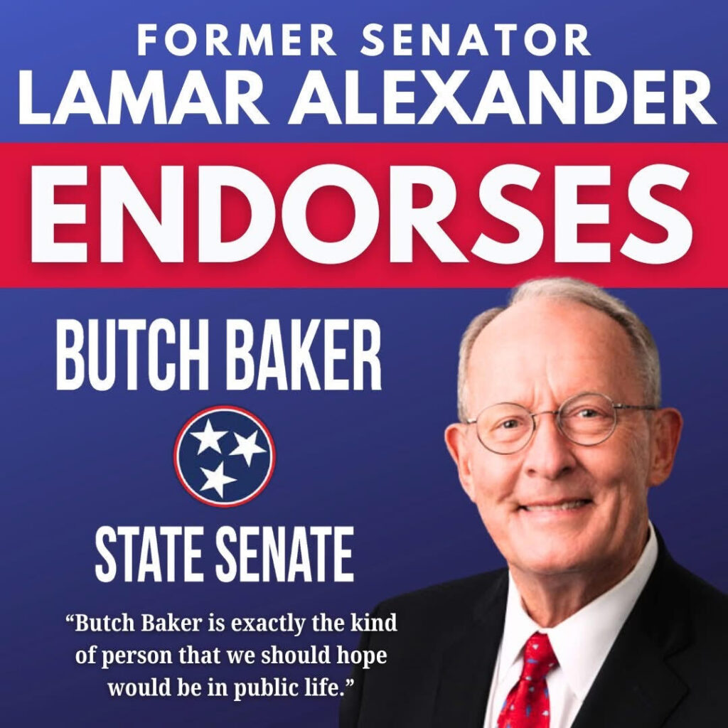 Former Governor Lamar Alexander has not been particularly active in Tennessee Republican primary races in recent years, and it has been a long time since he has been on a ballot in the state. So, his endorsement of Butch Baker, who is challenging incumbent State Senator Mark Pody in the GOP Primary in a Middle Tennessee district that covers Wilson and a portion of Davidson County raised some eyebrows. Lamar explained to a few people that Butch was very close to his son Drew and spoke at his son’s funeral so it was a highly personal reflection of support. Baker was among Republicans recently notified that they were not “bona fide” by GOP chairman Scott Golden. Baker immediately paid the required qualifying fee to the party and was cleared to be listed on the ballot for the GOP primary in August.