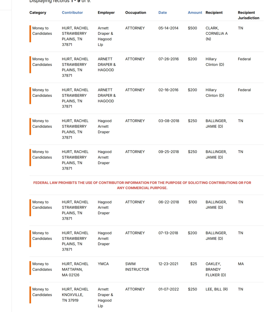 Her consistent campaign donations to Democrats over the past decade, including donations to Hillary Clinton, and an absence of any significant donations to conservative Republicans, justifiably raises questions about her values, judgment and partisan leanings, along with Governor Lee’s.