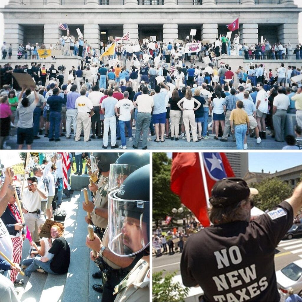 Many Tennessee voters who weren’t even in the state 25 years ago when this battle was fought may not know exactly why Tennessee doesn’t have a state income tax, even though many have come here because of that fact. However, thousands involved in Tennessee politics today got their start successfully joining in circling and honking at the capital in protest of the Sundquist/Naifeh scheme.