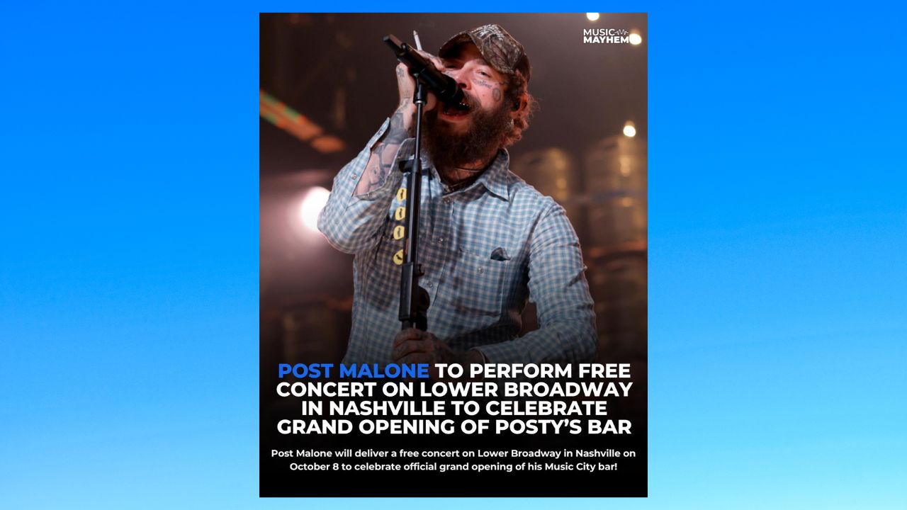 In an exciting announcement for music fans, Post Malone will take the stage for a special performance on Lower Broadway this Wednesday night, marking the grand opening of his new bar, Posty’s. The highly anticipated event is free and open to the public, kicking off at 8 p.m. Attendees can expect a night of music and celebration as the popular artist showcases his signature style in the heart of the city.
