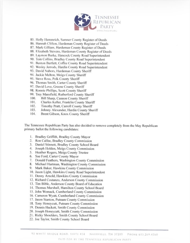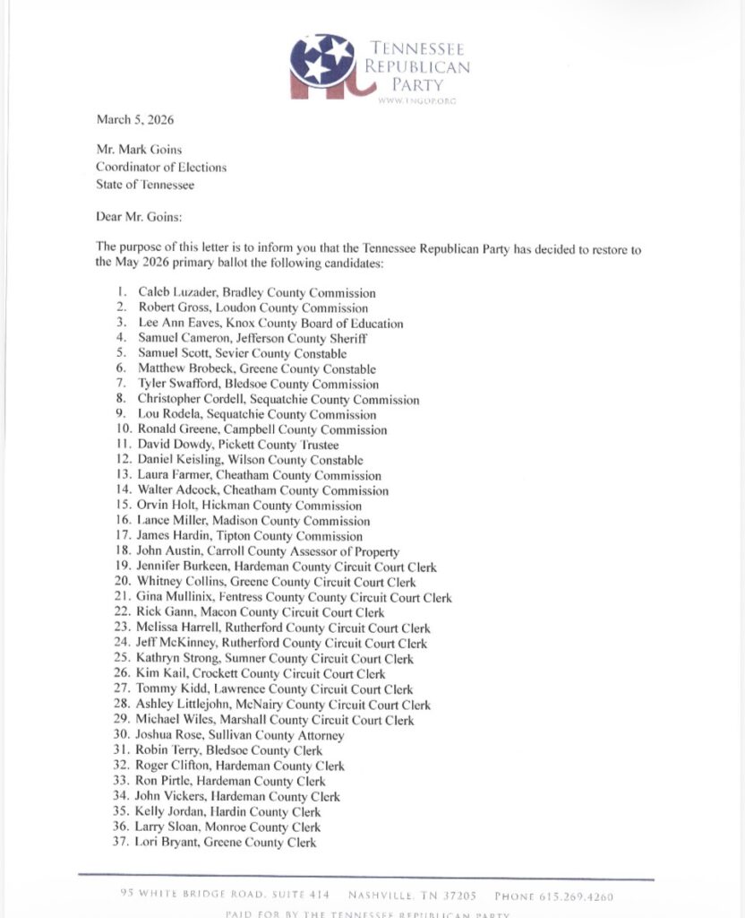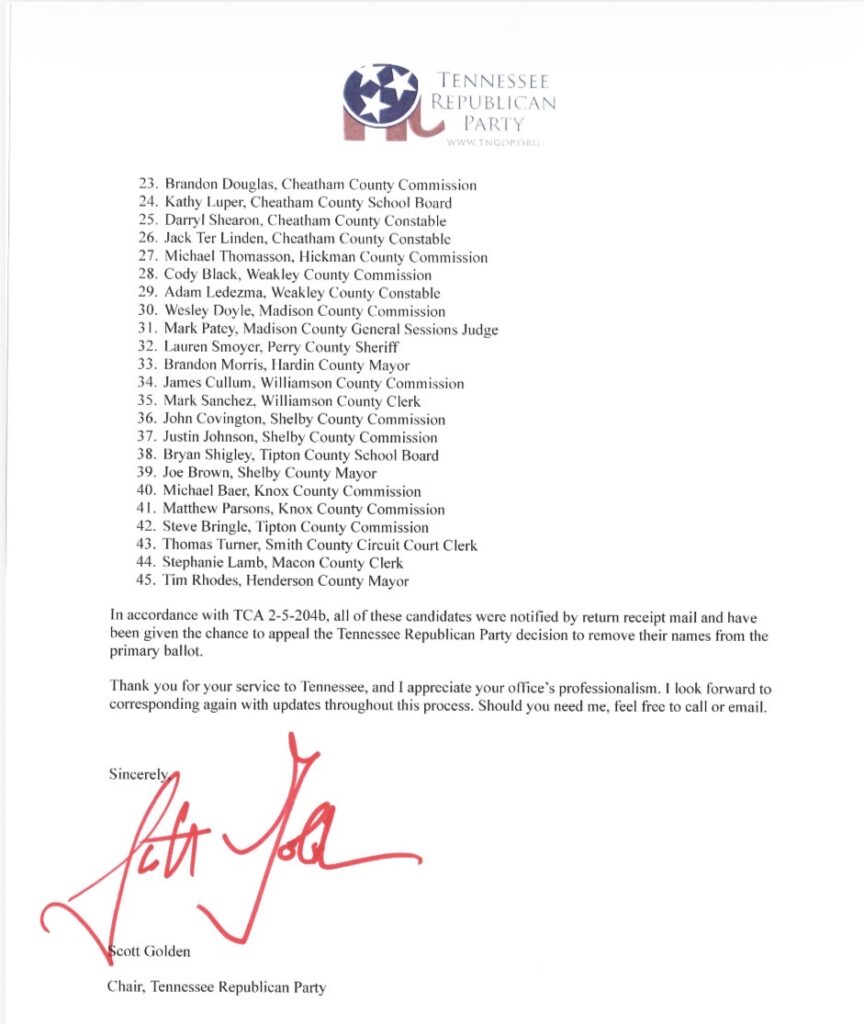 Golden added that while some criticize the “bona fide” process that the Tennessee Republican Party has adopted, other states in the southeast are seeking to adopt the methods used by Tennessee either legislatively or through their own state party bylaws. “North Carolina just conducted their Republican Party primaries without similar guard rails in place, and at least one candidates who has openly admitted to being Democrat and supporter of ISIS won her State Senate primary by running unopposed, but will face opposition in the general election. The state’s Republican leadership now has to deal with the fact that Democrats are openly running as “Republicans“ in some elections,” Golden said. “Like it or not, our process helps us avoid that outcome.”